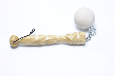 This is a hardcore toy made from a large nut and wood. As harsh as it is pretty, It's very good for deep thuddy impact.